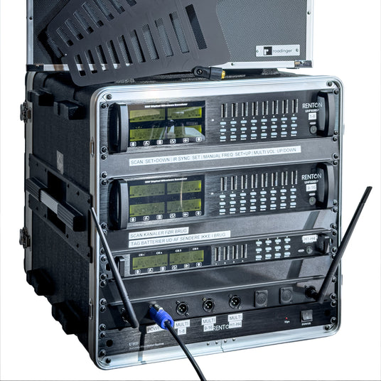 We build our systems around our 4- and 8-channel Renton Pro wireless microphone systems. This provides great flexibility and makes it possible to run up to 24 simultaneous channels at a price per channel significantly lower than other brands — without compromising on quality or ease of use. You get a system that performs far above its weight class.