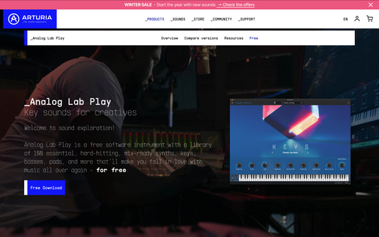 Arturia is one of the most respected names when it comes to virtual synthesizers and classic instruments. In addition to their extensive premium collections, Arturia also offers free versions and tools that make it easy for producers and DJs to get started with high-quality synth sounds without investment.