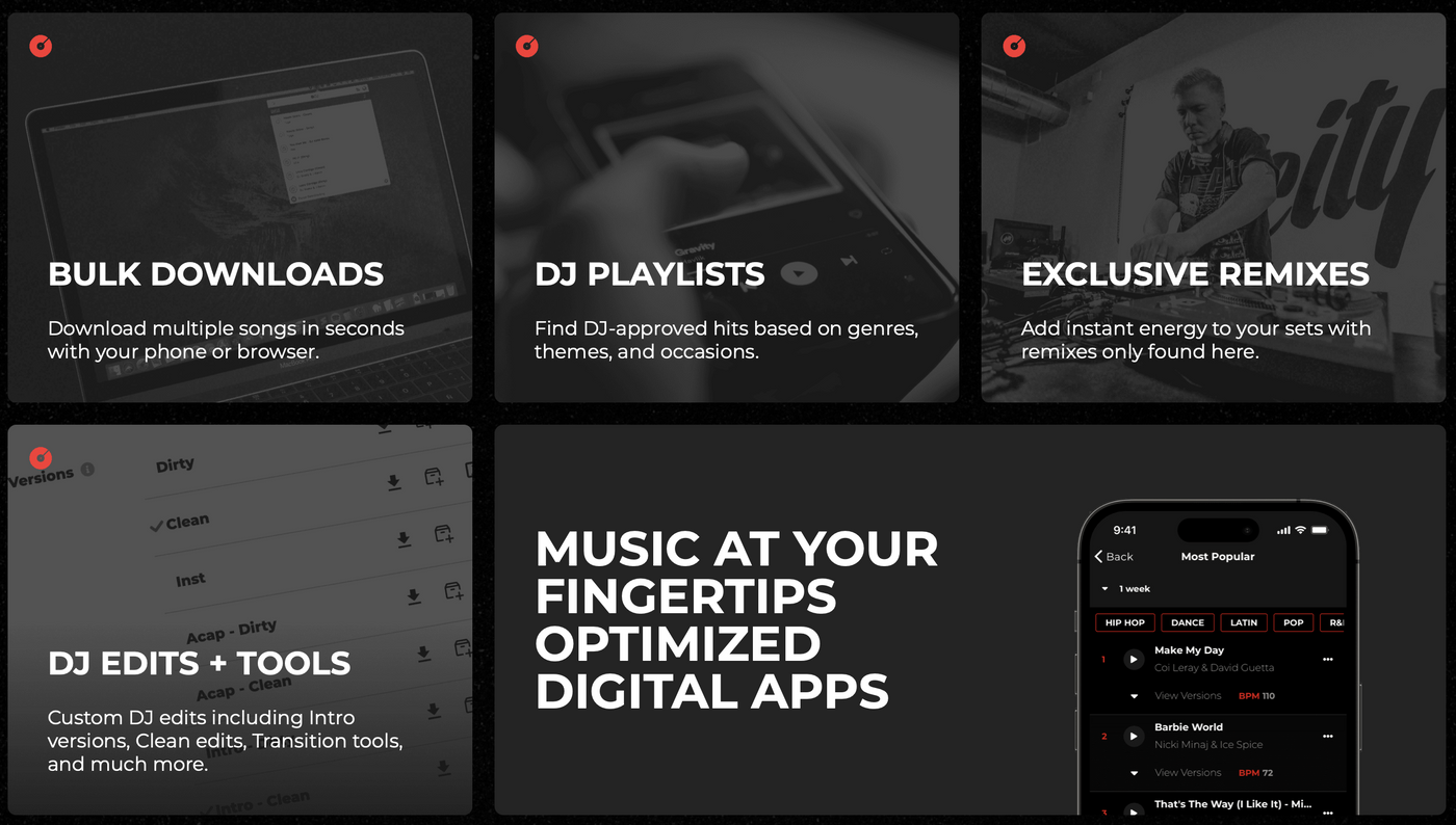 As a digital record pool, DJcity gives professional DJs access to new tracks, remixes, intro edits, and mashups — often before they are officially released elsewhere.