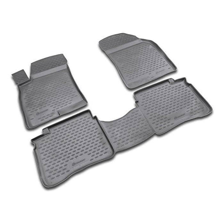 Rubber mats for cars are designed to protect the car’s floor from daily wear and damage. They are made from hard-wearing rubber that is resistant to water, mud, and other liquids. This makes them ideal for use in all weather conditions. Our rubber mats for cars are tailored to specific car models, ensuring a perfect fit and maximum protection.