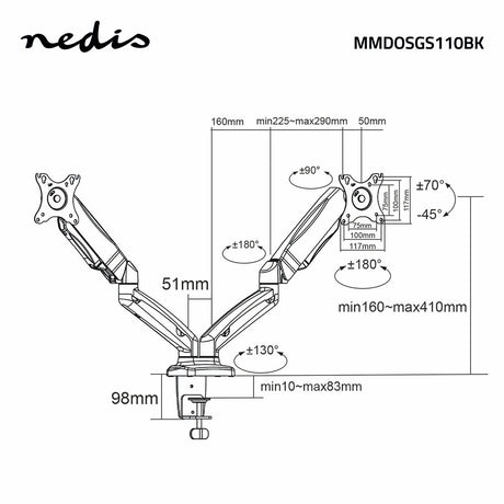 Tv Wall bracket Fully movable 42 - 70" 35 kg Silver/Black