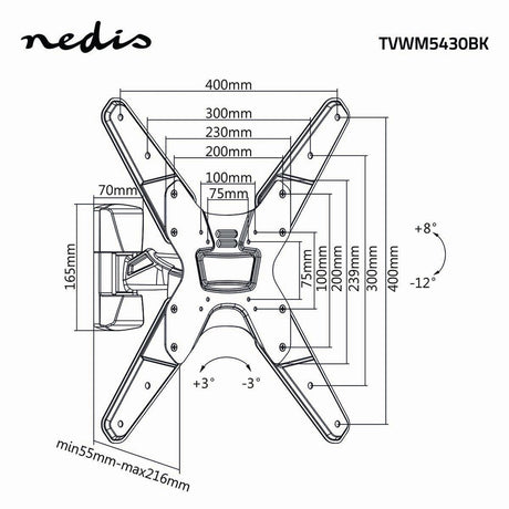 TV Fully Movable Suspension with 3 pivot points (23-55", 30 kg)