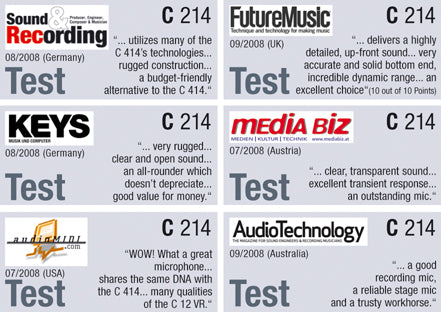 - Like the C414, the C214 offers a supreme one-inch capsule on an integrated suspension to reduce mechanical noise.