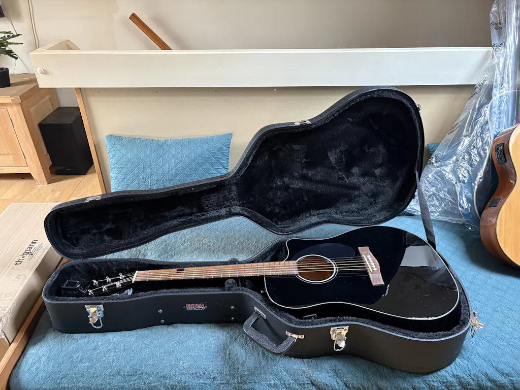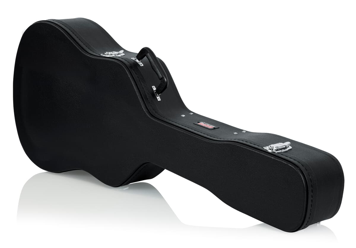 Protect your dreadnought guitar with our ultra-durable hard-shell bag! The curved plywood construction is built to withstand years of use and wear, while the black Tolex PVC coating creates a moisture-resistant and sturdy exterior. The ergonomic handle provides a comfortable grip and balances the weight of your instrument perfectly. The thick plush inside keeps your guitar well padded against shock, and the spacious interior storage room organizes your favorite guitar accessories while providing extra headrest. The chrombed locking mechanisms ensure that your guitar is safely stored.