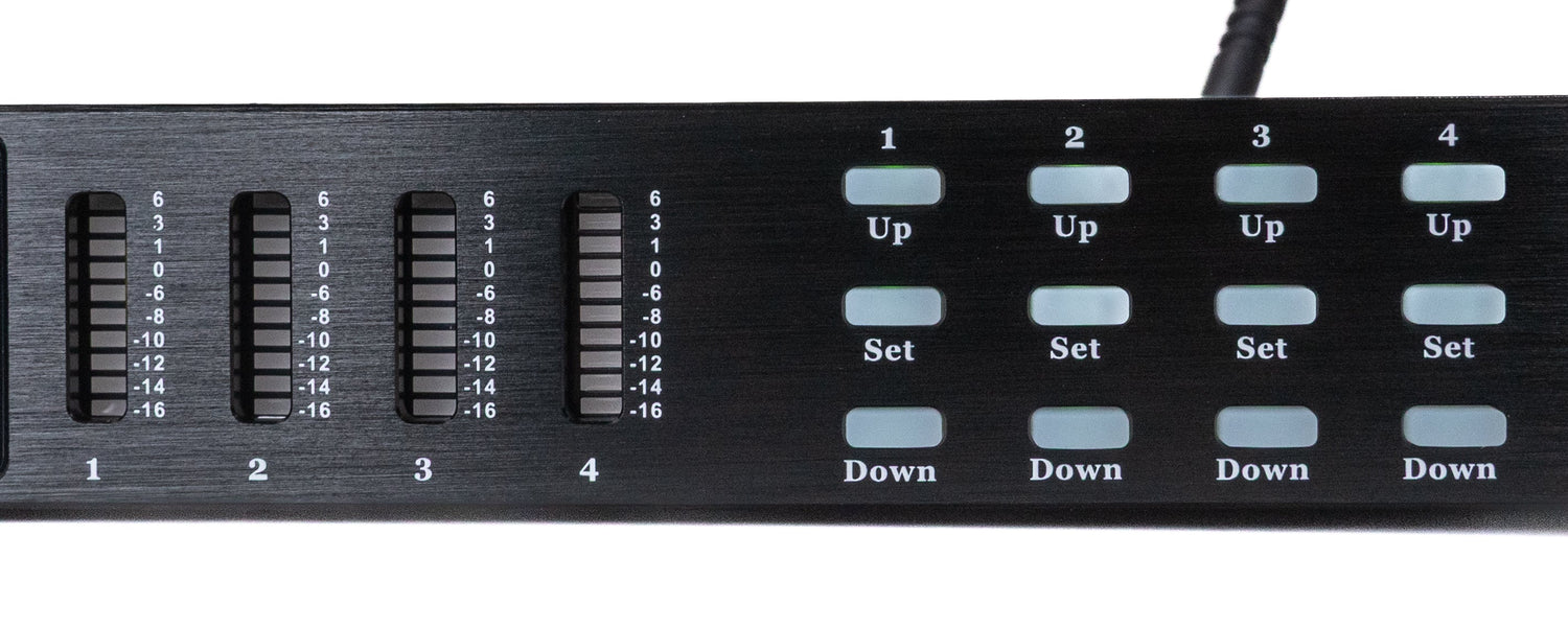 - Mix output, where all 4 channels can be sent to one output, e.g., to an active speaker (6.3mm jack)