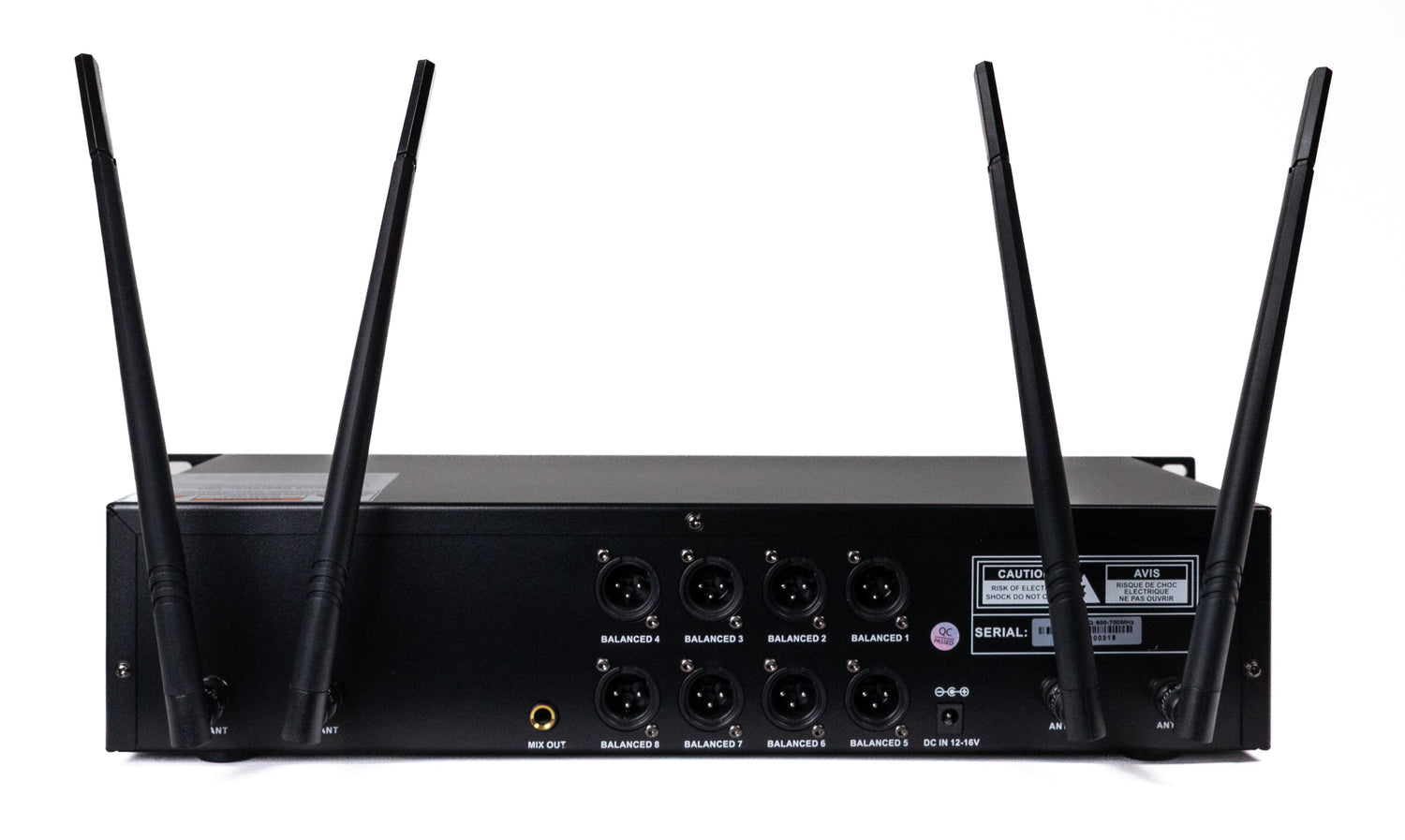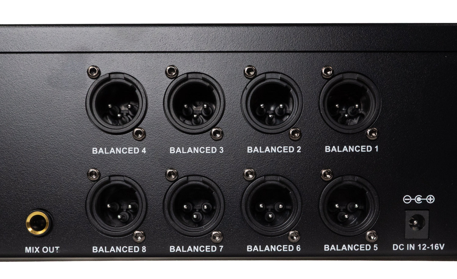 - Mix output, where all 8 channels can be sent to one output, e.g., to an active speaker (6.3mm jack)