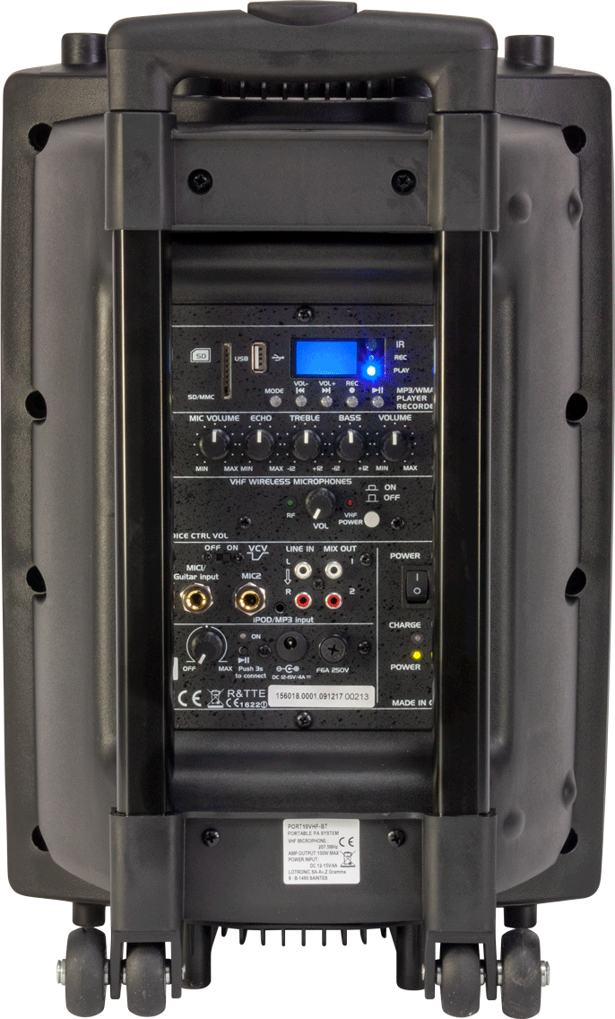 It offers total freedom of movement in any situation due to the wireless VHF microphone (handheld), a remote control and various inputs and outputs suitable for all kinds of sources including USB/MP3, SD/MMC and iPod ports.)