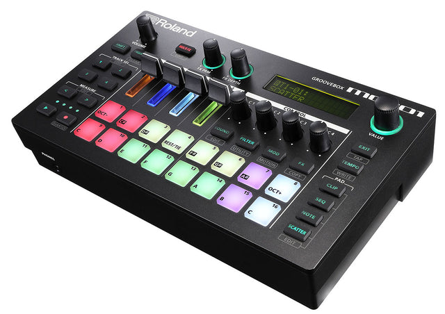 Equipped with Roland's latest sound engine, the MC-101 has all the sounds of legendary Roland rhythm machines and synthesizers, but also looks ahead to modern digital and hybrid sounds. The eight-track sequencer is optimized for fluid production of contemporary electronic music with 16 ultra-sensitive pads for playing or sequencing drum parts, melodic bass lines or polyphonic chord progressions. There's also a TR-REC step sequencer inherited from Roland's classic drum machines, perfect for quickly building rhythms.