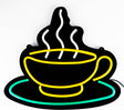 Nice neon sign with a steaming coffee cup!