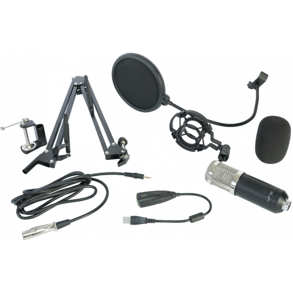 - Cool microphone package with everything you need to get started recording