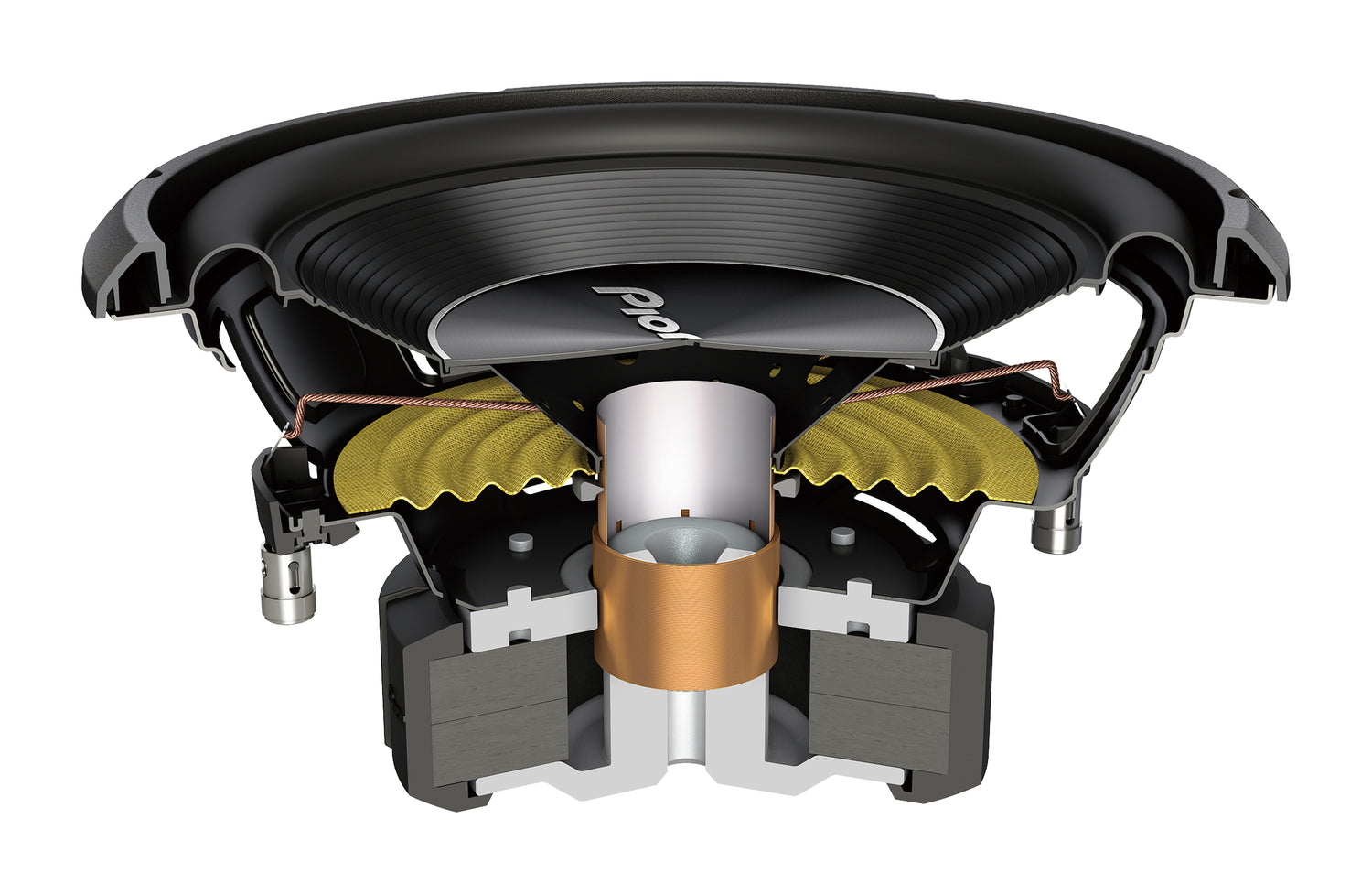 When matched with Pioneer's GM-A series of amplifiers, you can enjoy powerful, solid bass in your car, no matter what volume level.