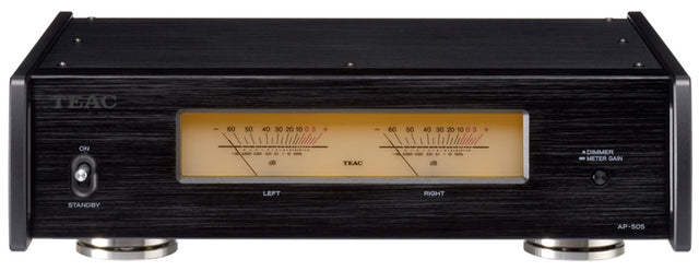 The AP-505 is a versatile, TEAC-tuned stereo power amplifier with Hypex Ncore technology in a compact, elegant case. The lightweight aluminium-alloy panels cover a robust steel chassis. A pair of large level meters add an interesting visual effect when the amplifier is in action, while TEAC's patent-pending 'pin-point' feet, located at three strategic positions on the underside, add incision to the sound and help create a more detailed and stable stereo image.