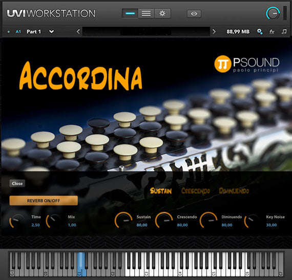 Accordina Accordina is a free reeds instrument, similar to the harmonica. It borrows its chromatic keyboard (44 notes) from the accordion. PSound Accordina has been sampled up to 6 layers and 3 Articulations for more than 400 samples (300MB storage).