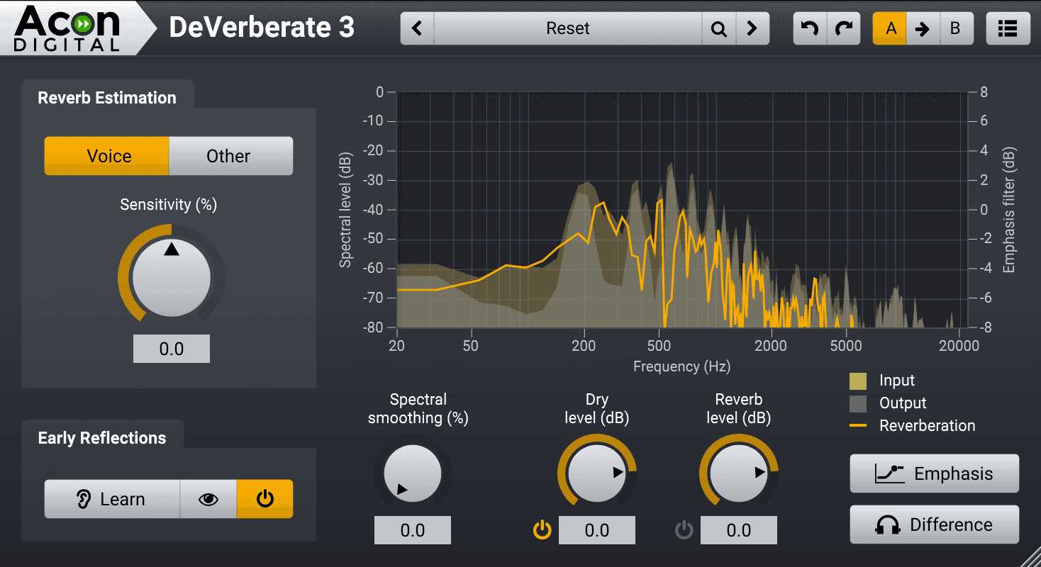 - DeVerberate is a reverb reduction plug-in that can attenuate or boost the reverberation that is already present in recorded material. The new version includes an entirely new algorithm based on deep learning for fully automatic reverb reduction of recorded dialogue.