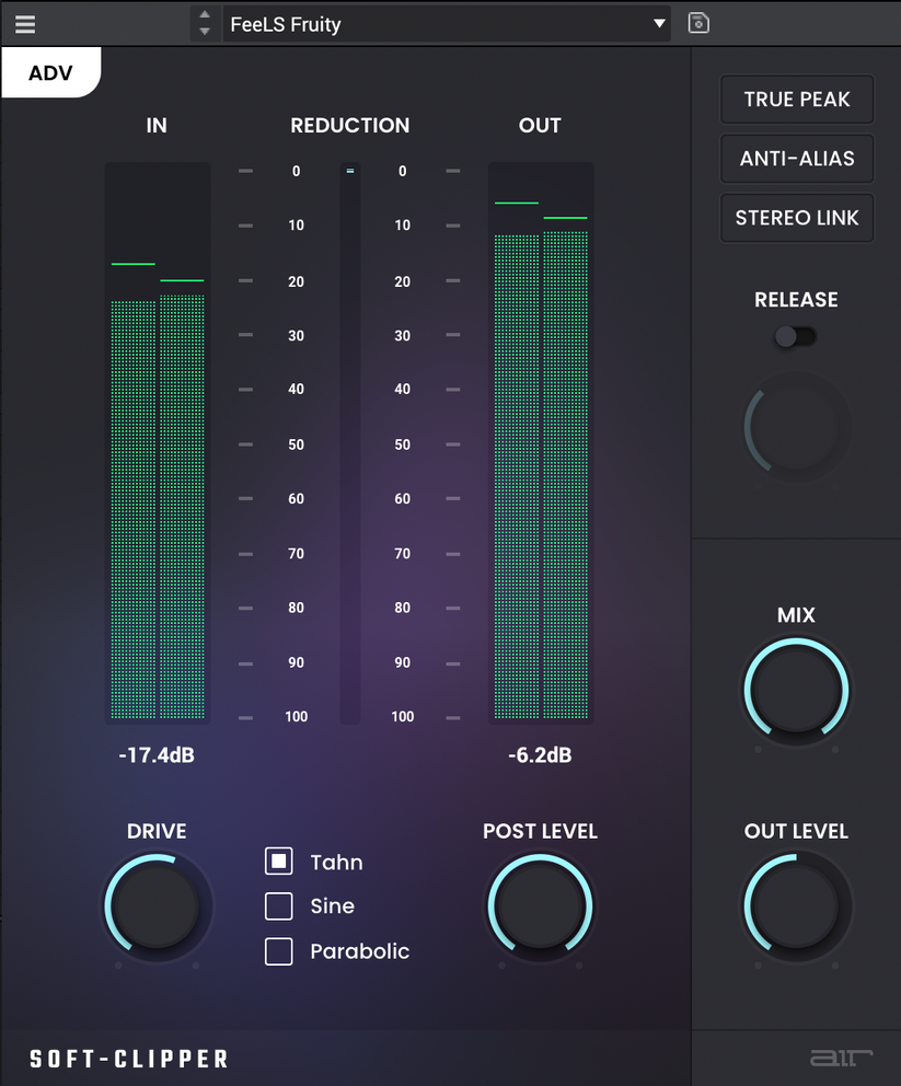 - Shape: Whether you want your clip to roll smoothly or hit hard, this is where you customise that curve. - True Peak & Anti-Alias: Minimise distortions and artefacts. AIR Soft Clipper keeps your sound crisp and clear. - Stereo Link: Don't sweat about imbalances between channels; Stereo Link makes sure both sides are working together. When Details Matter