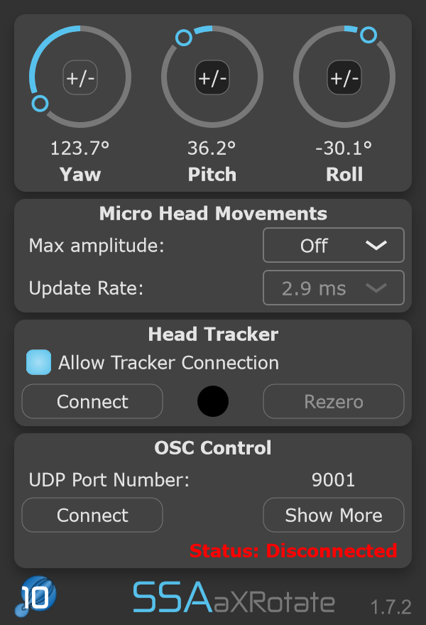 The aXRotate plugin also allows you to add small oscillations to the sound scene to simulate the micro head movements listeners make all the time. This can increase the sense of spaciousness in static binaural renderings.