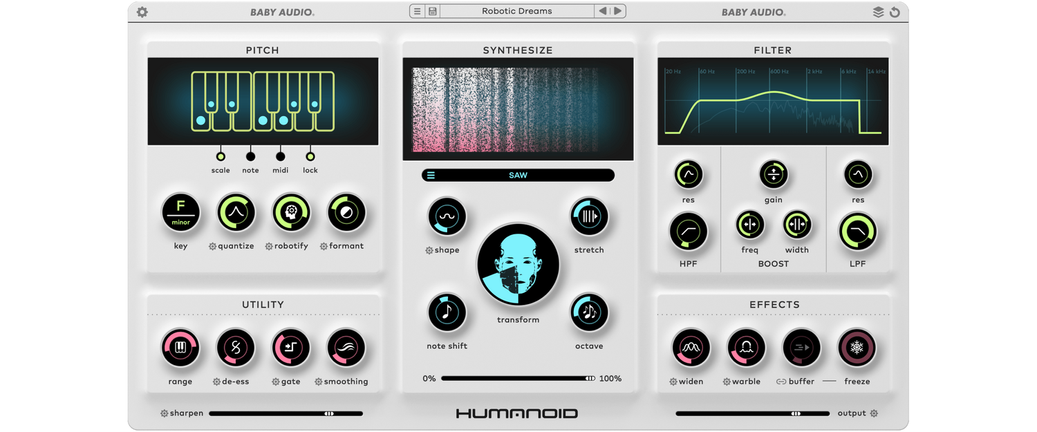 At its most extreme, Humanoid will turn a voice fully into a synthesizer, while moderate settings will add a subtle electronic shine to the vocal mix.