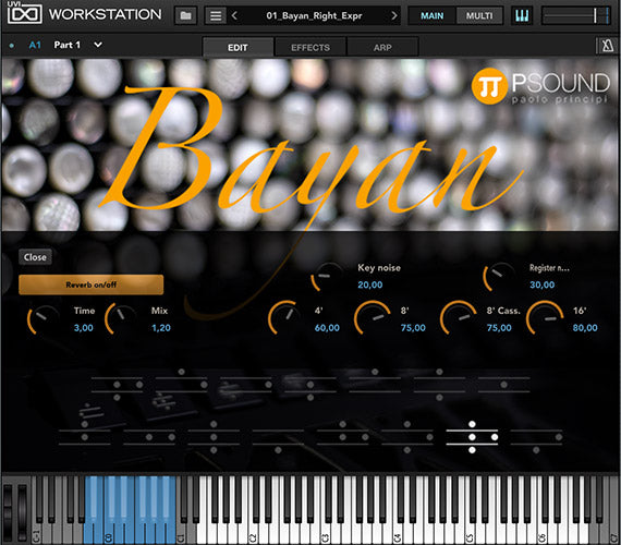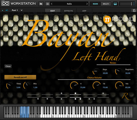 The bayan is a type of chromatic button accordion developed in Russia in the early 20th century. It's used for classical and contemporary music. The original sampled instrument is the amazing Bugari Bayan Prime. PSound Bayan is the most accurate virtual accordion available.