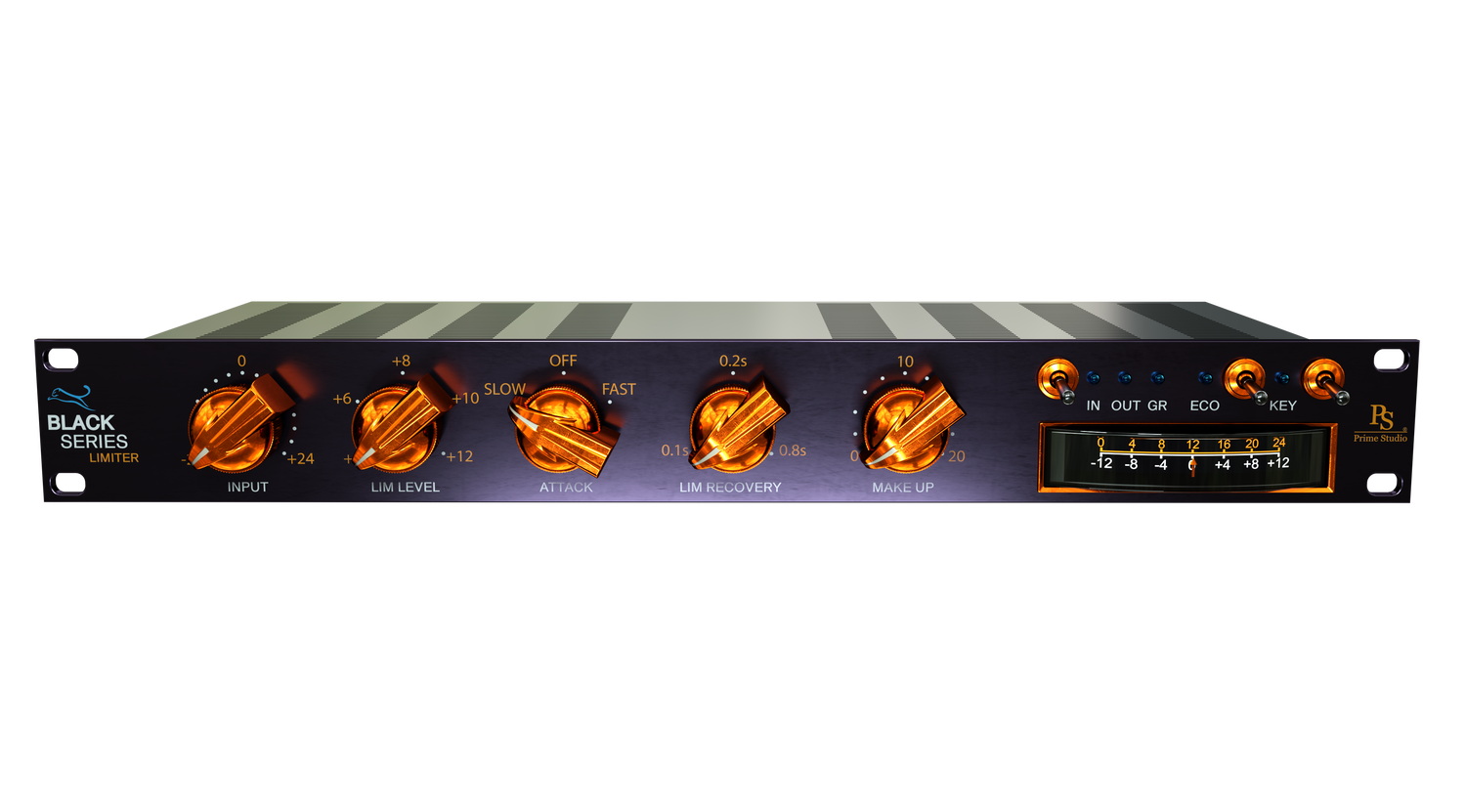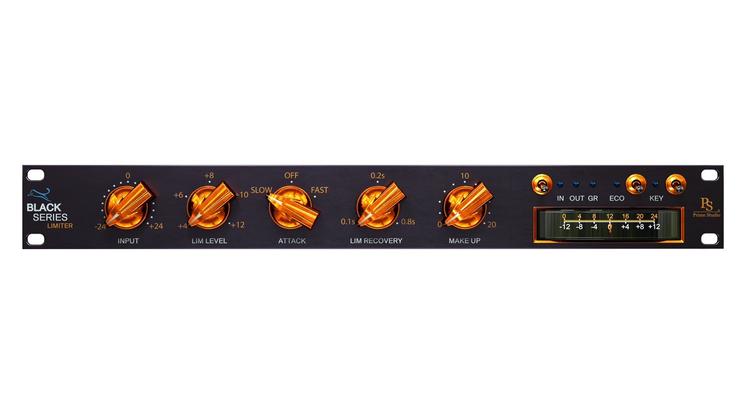 Light on CPU usage Prime Studio® Black Series Limiter serves you with highest sound quality. Want to get even lighter on CPU usage the you can do so by switching the ECO modus on which deactivates the harmonic preamp distortion sound of the input stage.