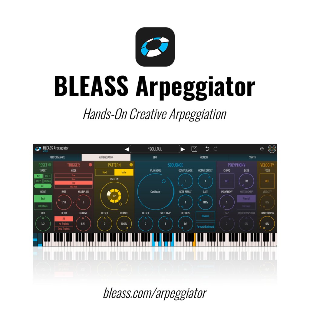 BLEASS Arpeggiator redefines classic arpeggiation with a modern, powerful approach, built in collaboration with renowned French producer Canblaster. Moving beyond the traditional up-and-down patterns, it offers polyrhythms, polyphony, and a variety of arpeggio patterns.With a user-friendly, hands-on interface, BLEASS Arpeggiator makes live and studio creativity easy and intuitive. Real-time control is enhanced by XY pads, LFOs, and BLEASS' unique Motion Sequencer, allowing musicians to explore dynamic modulation with ease.Designed to work seamlessly with any synth or as a standalone MIDI generator, BLEASS Arpeggiator also features a built-in FM synth for punchy arpeggiated sounds. It’s available now on both desktop and iOS, bringing musicians a versatile, inspiring arpeggiator to elevate their sound.