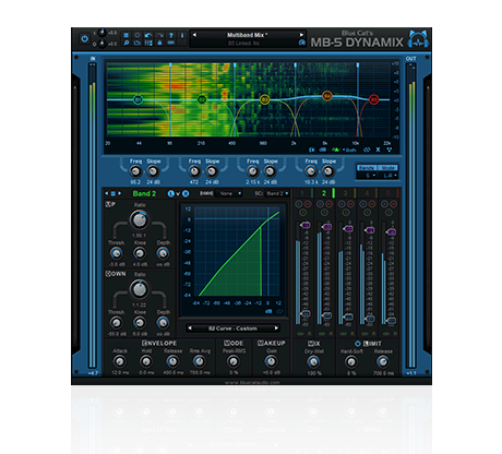 Blue Cat's MB-5 Dynamix is an extremely powerful all-in-one multiband dynamics processor: it can be used as a multiband compressor, limiter, gate, expander, waveshaper, or all combined at once, on any part of the spectrum.
