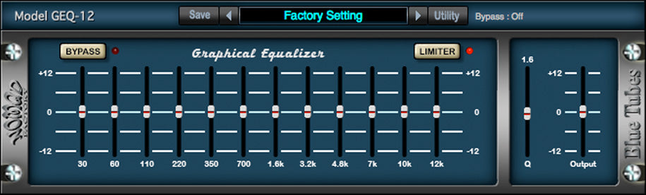 The large number of available EQ bands make the GEQ12 an ideal companion to parametric EQ, it is ideal for recording and mixing, where a professional result is required. It's the perfect tool for sculpting the fine detail out of raw digital audio. 12 EQ bands, adjustable Q and brick-wall Limiter circuit at the output.