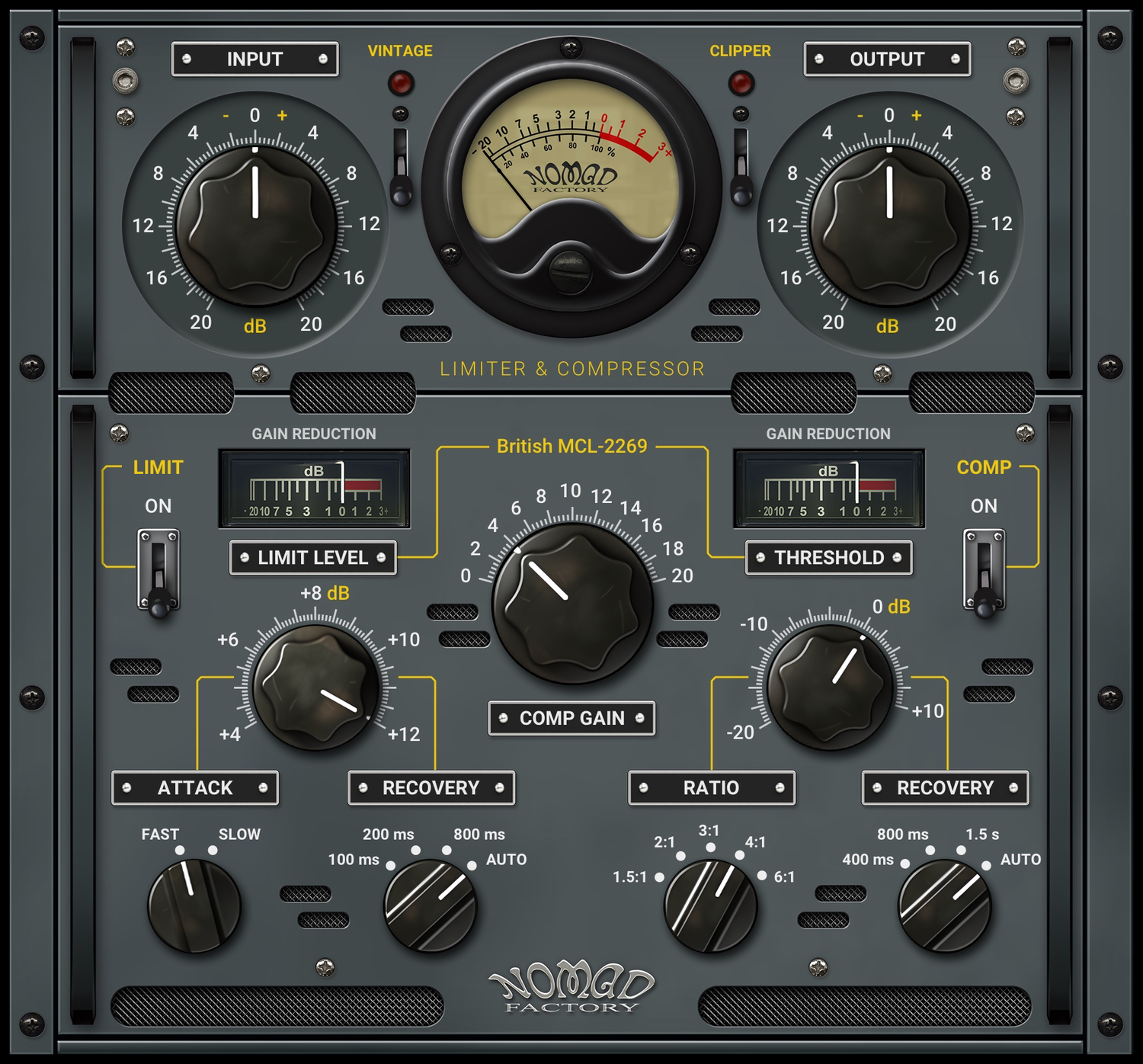 The Nomad Factory MCL-2269 Compressor Limiter is inspired by the legendary 2254 Compressor from a famous British console. It delivers the same warm, musical compression that has defined countless hit records.