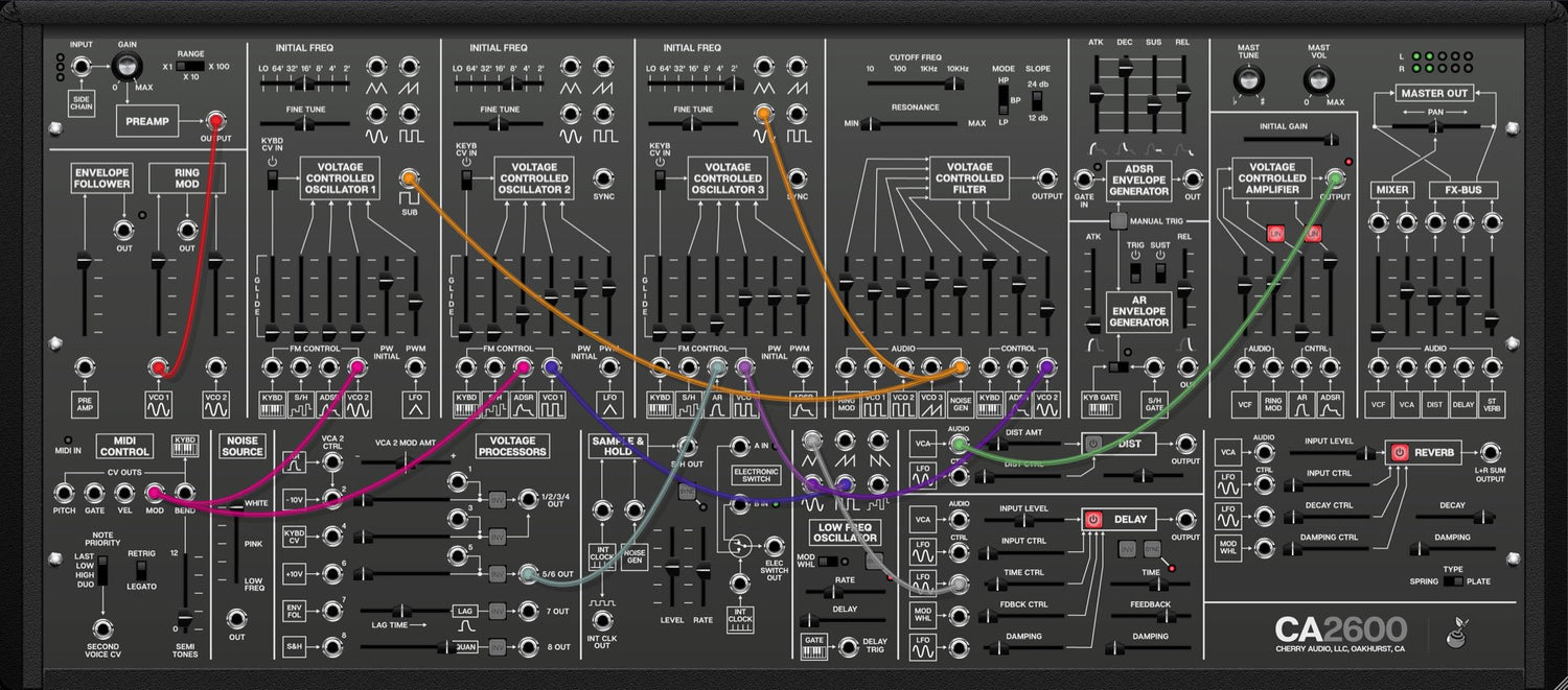 The Cherry Audio CA2600 is a powerful, self-contained duophonic synthesizer inspired by the groundbreaking ARP 2600 synthesizer. Every aspect of the original, from the quirky oscillator waves, to the powerful ladder filter, to the external audio input and preamp section was modeled with tremendous precision. Though it features similar functionality, it’s been thoughtfully updated for increased flexibility - with semi-normalled patch cabling, integrated effects, and no hidden windows or menus in the audio path, CA2600 delivers an unprecedented hands-on, “everything right in front of you, right now!,” vintage synthesis experience like no other.