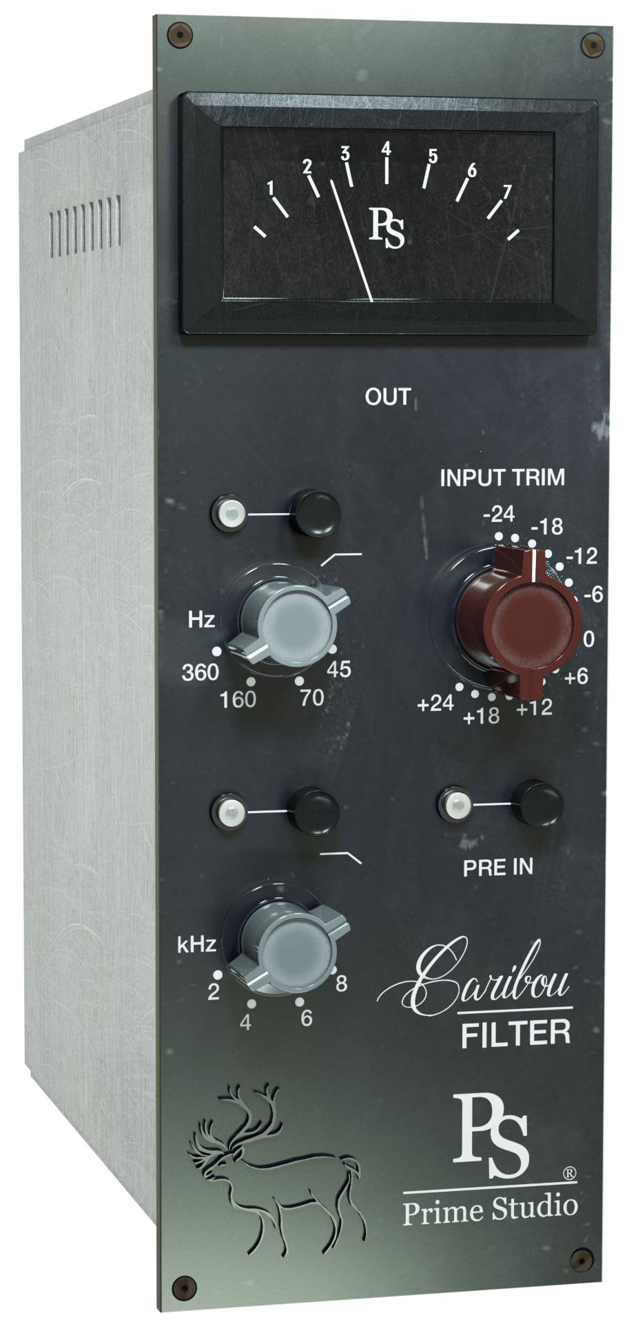 Prime Studio Caribou Filter is two band filter tool based on a rare vintage preamp module. Prime Studio Caribou Filter is a high pass and low pass filter tool based on a rare vintage module. Besides the filter bands you can add preamp harmonics to shape the sound of your tracks.When you need to clean your low and high frequency bands and just want to add some more character to your tracks by adding harmonic preamp distortion Prime Studio® Caribou Filter is the right choice. Dial in class A style sixties preamp punchiness using the input trim knob and switching on the pre in function and your tracks will stand out.