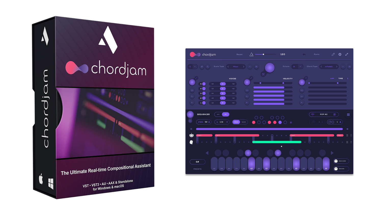 Chordjam is an innovative plug-in and standalone application that builds chords and progression patterns through intuitive user-guided randomisation.