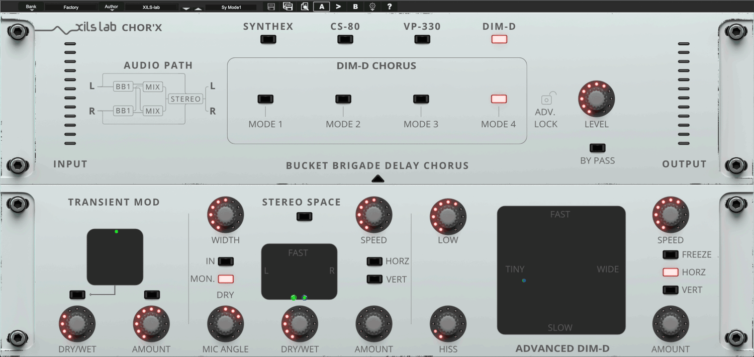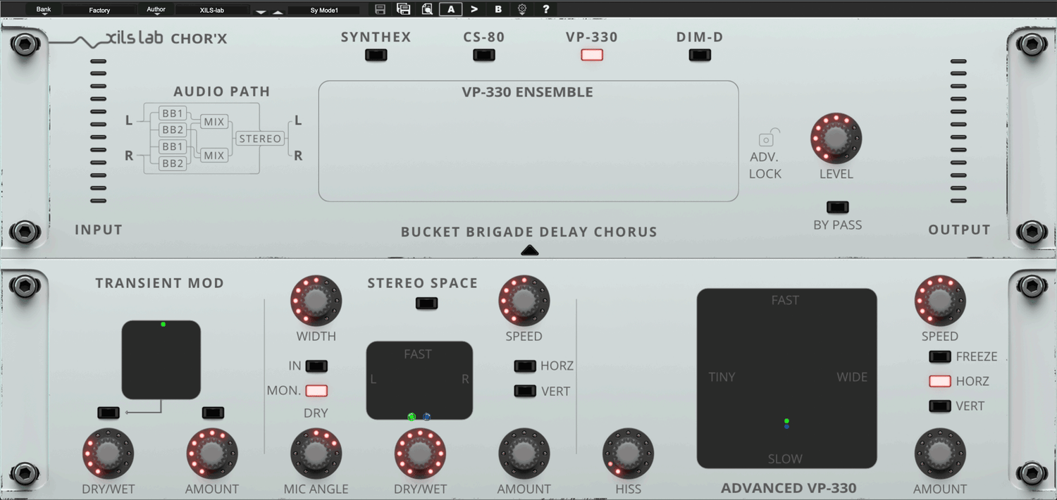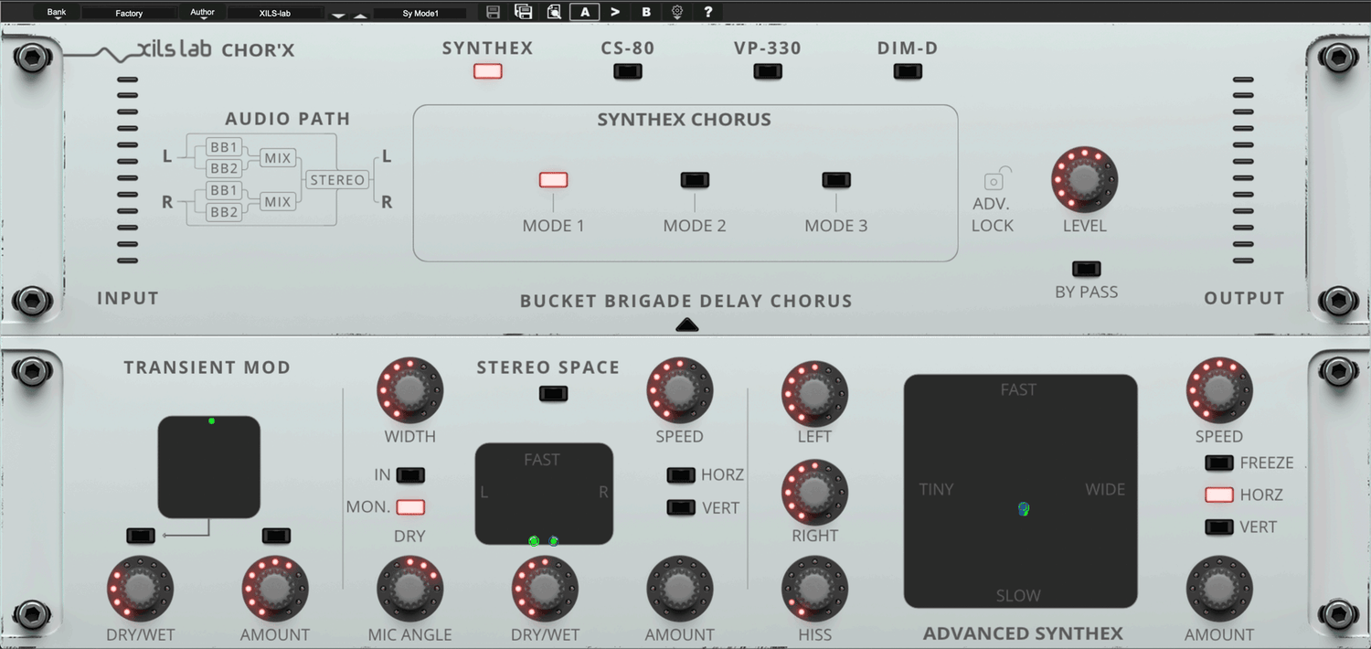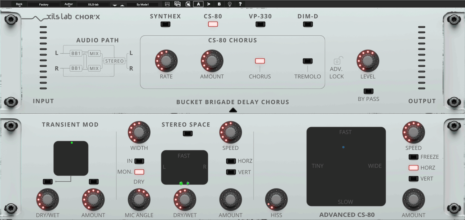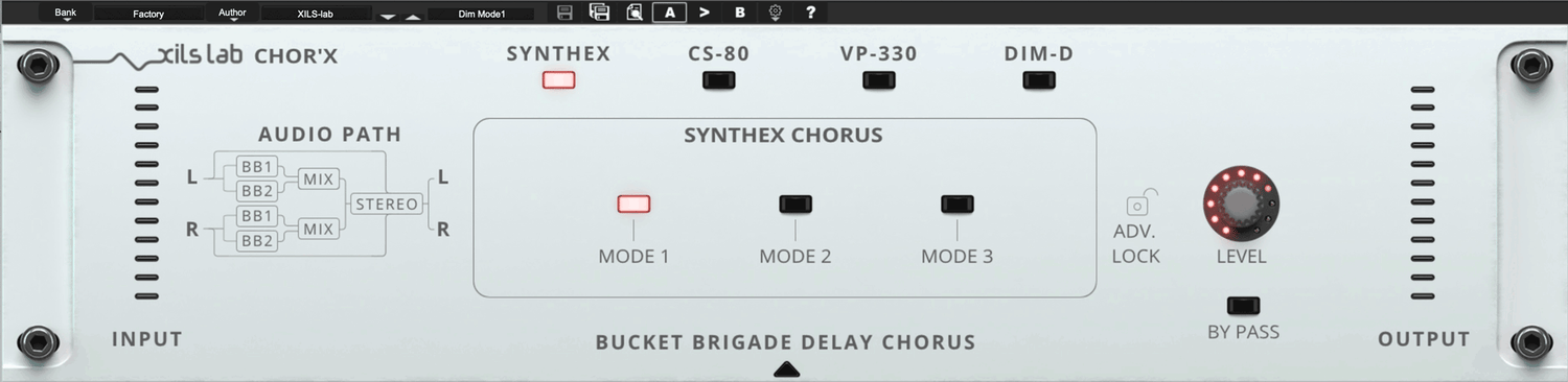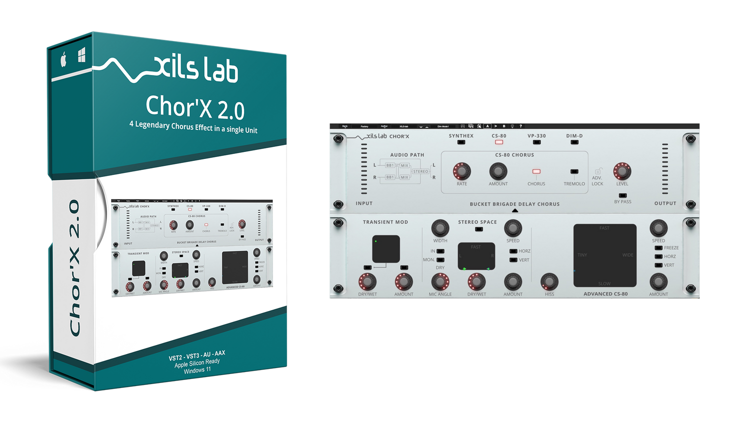 XILS-Lab went to great lengths to create authentic sounding chorus effects. Having studied many vintage chorus units and deciphering what made each one unique, they then modeled four chorus modes (Synthex, CS-80, Dim-D and V+ 330). Chor'X emulates some of the most famous archetypal structures found in these legendary units: 4 BB Delays, 2 BB Delays and 2 BB delays with phase tweaks, with or without an internal compander. Unleash your creativity and go wild by combining these diverse chorus effects together!