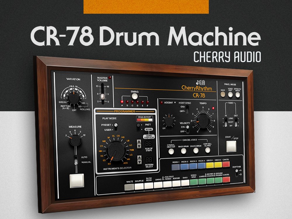 Cherry Audio's CR-78 accurately recreates the punchy analog sounds and 34 onboard preset rhythms of the first true classic drum machine and takes it much further. We've done away with the complex beat programming, replaced it with a familiar X0X-style button-per-step interface, and added an easy-to-use song mode for pattern chaining. Unlike sample-based emulations, Cherry Audio's CR-78 uses modeled synthesis to recreate the classic tones of the original and makes a quantum leap forward by making these sounds fully editable. Four studio-quality effects are provided, with a uniquely fast and fun "send button" for each individual tone in the effects and mixer section, which also includes a complete mixer, compressor, and a six-band graphic EQ.
