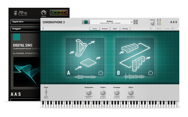 "When Daniel Stawczyk dropped Digital Sins the whole office stopped. We found ourselves enthralled in this altered universe where Chromaphone acted as a classic digital synthesizer, " said Eric Thibeault, product designer at Applied Acoustics Systems.