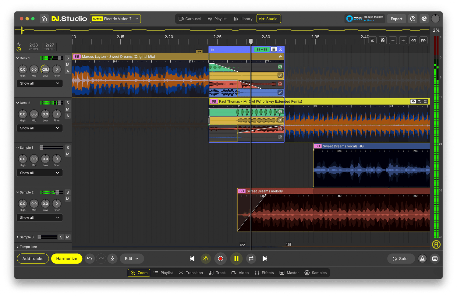 This is where DJ.Studio Pro + Stems Edition 4.0 comes in – a DAW for DJs, bridging the gap between traditional DJ mixing and desktop-based studio software. From music discovery, to mix editing and flexible exporting, DJ.Studio provides all the tools you need to make full, professional-sounding DJ mixes from start to finish…