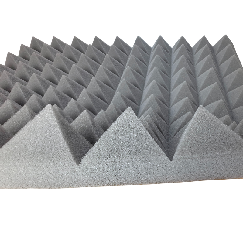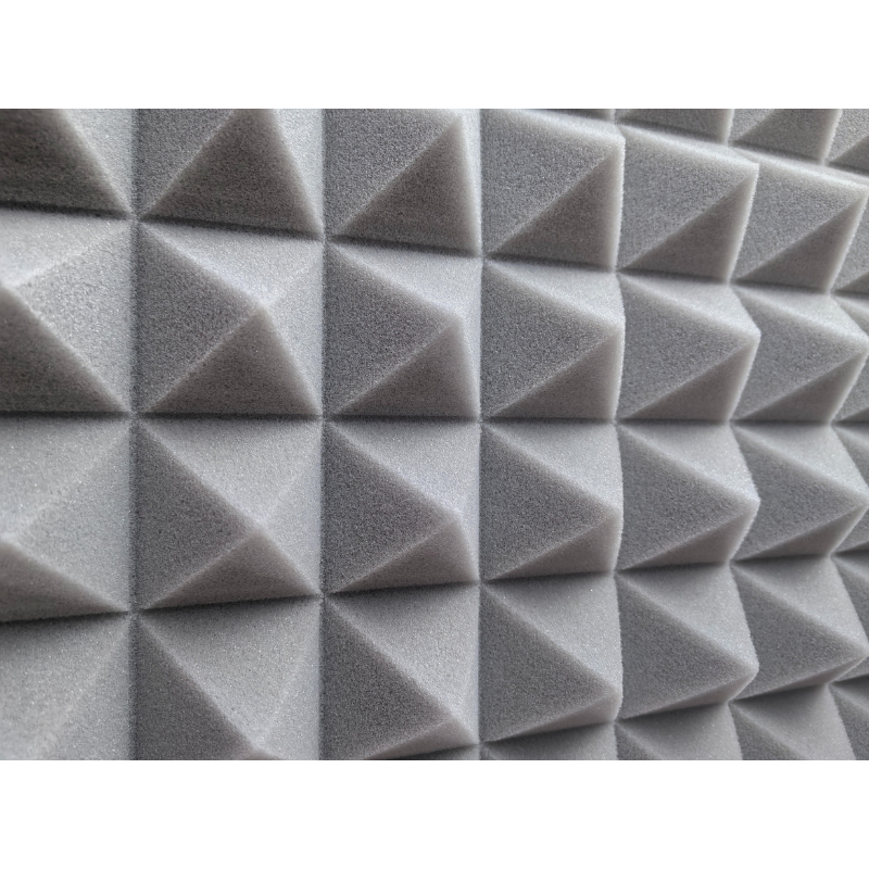 Panelerne er fremstillet i akustikskum med pyramidestruktur, som hjælper med at absorbere lyd og skabe en mere behagelig akustik. Resultatet er klarere tale, bedre optagelser og en mere præcis lytteoplevelse. Det stilrene grå design passer diskret ind i både moderne hjem og professionelle miljøer.