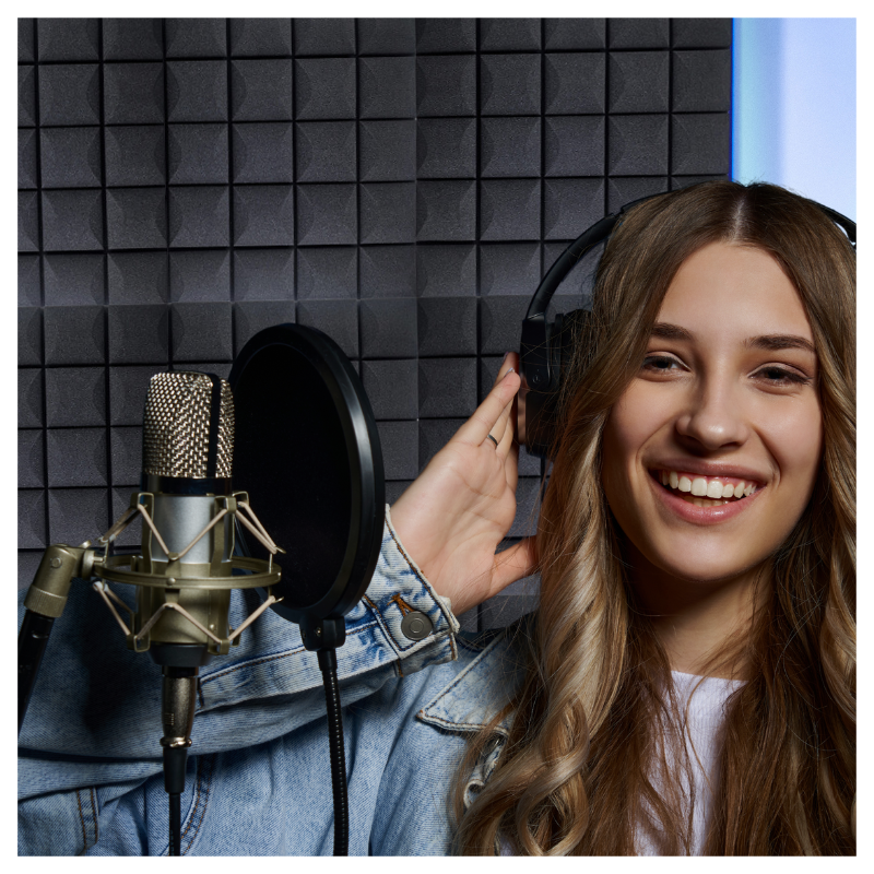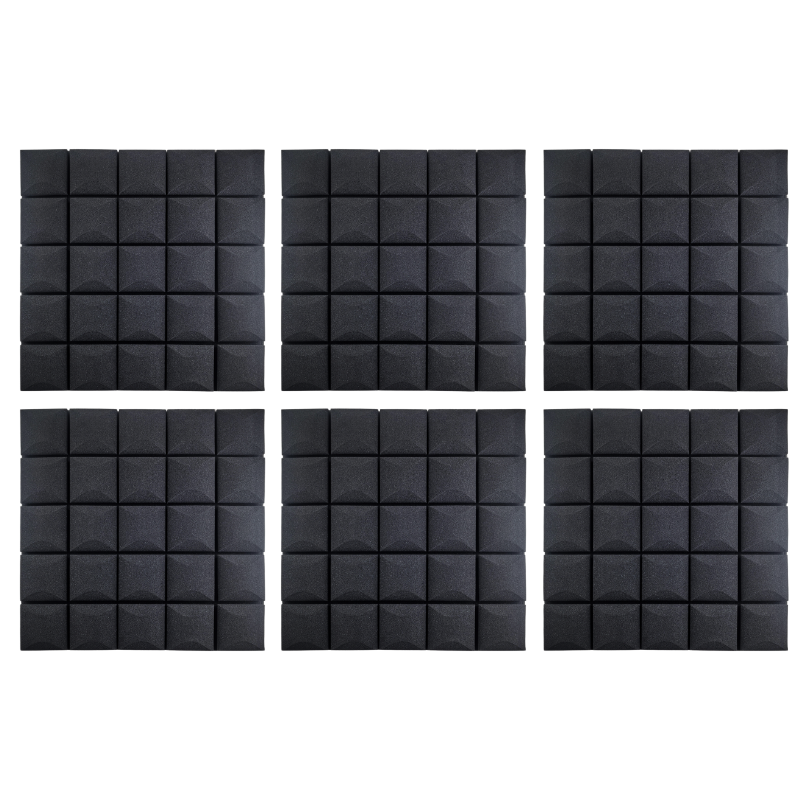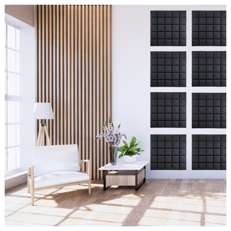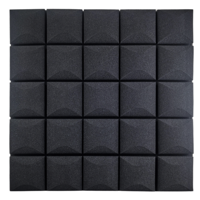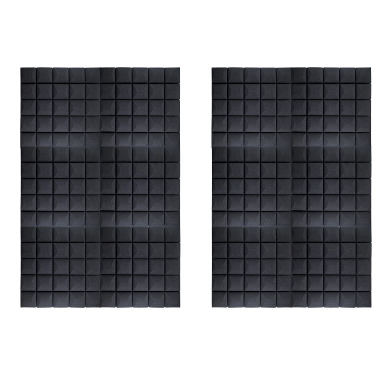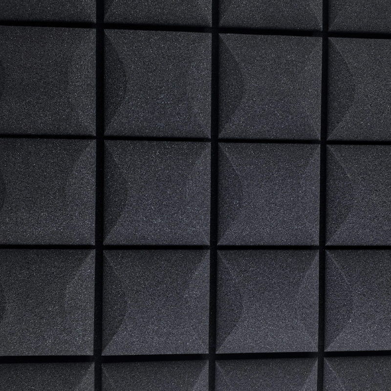 Panelerne er fremstillet i akustikskum med struktureret overflade, som hjælper med at absorbere lyd og skabe et mere kontrolleret og behageligt lydmiljø. Det giver klarere tale, bedre optagelser og en mere præcis lytteoplevelse. Den sorte farve tilfører et eksklusivt og professionelt look, der passer ind i moderne indretning.