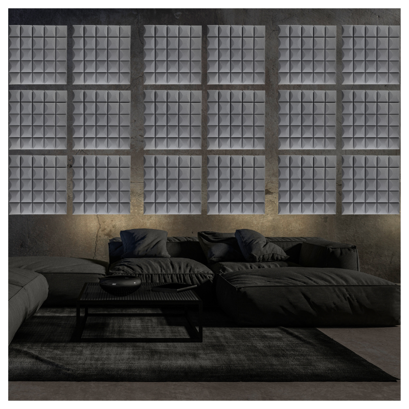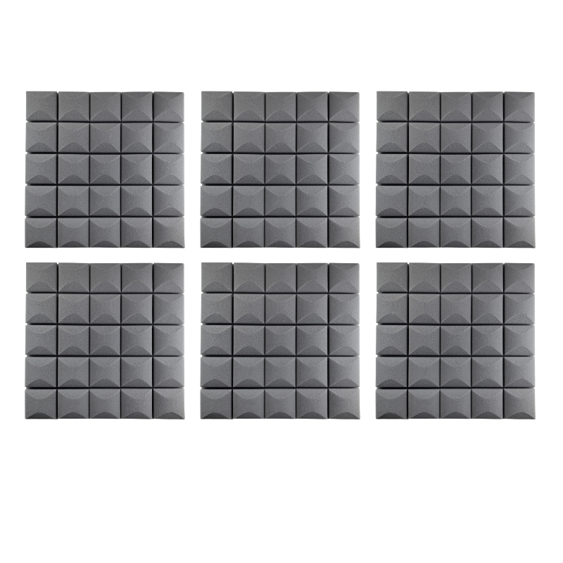 Panelerne er fremstillet i akustikskum med struktureret overflade, som hjælper med at absorbere lyd og skabe et mere kontrolleret lydmiljø. Det giver klarere tale, bedre optagelser og en mere behagelig lytteoplevelse. Den grå farve passer diskret ind i både moderne hjem og professionelle arbejdsrum.