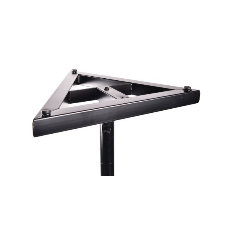 DNA MON 1 is a set of two sturdy, professional studio monitor stands. The stands are entirely made of black powdercoated steel. The lower base of each is shaped like an equilateral triangle. It has screwon, nonslip feet that allow the entire stand to be leveled. It also comes with spikes, which are great for carpeted surfaces. The top monitor stand is square in shape. Two nonslip strips glued to it eliminate any resonant vibrations generated by the loudspeaker and effectively hold it in place. The stand, in addition to the minimum level, has a fivepoint height adjustment. It extends to a maximum height of 133 cm, and the pin protection makes it suitable for holding even heavier loudspeakers. In addition, the pole is equipped with two hooks for convenient and aesthetically pleasing routing of cables in them. All this makes each of the MON 1 monitoring stands a comfortable, wellthoughtout and solid design, which is perfect for professional and home recording studios. At the same time, these are relatively inexpensive studio monitor stands at the best price from Music Express! Technical specification Pieces 2 Material powdercoated steel Color black Min. height 76 cm Max height 133 cm Monitor top base dimensions 23 x 23 cm Bottom base dimensions 43 x 43 x 43 cm Height adjustment fivepoint Sliding protection pressure pin Single stand weight 3.4 kg