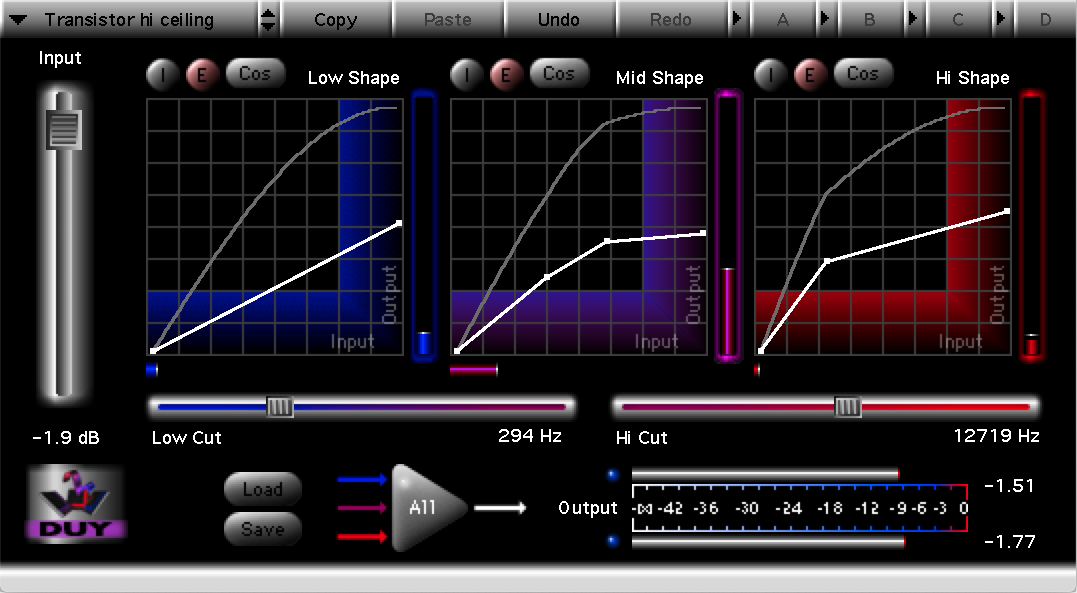 Duy Shape is a unique 3 band sound processor that provides exclusive and unlimited special effects for your tracks.