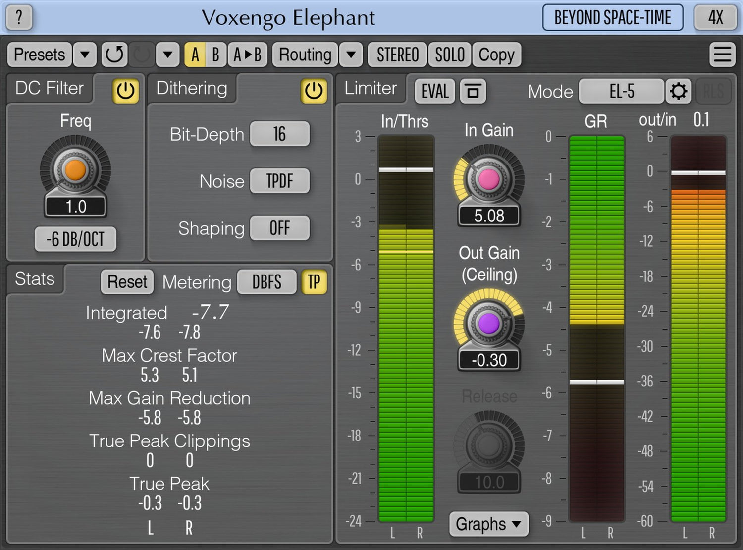 Elephant, also featuring a DC offset filter, and a high-quality bit-depth converter with an optional noise-shaping, allows you to finish your music and audio productions with a spark!
