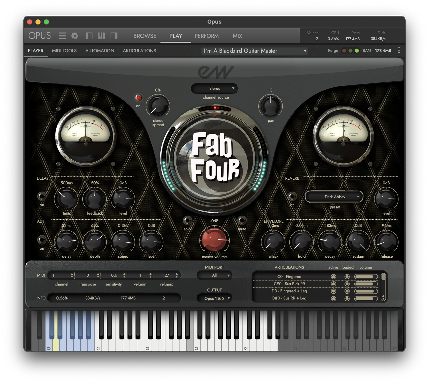 FAB FOUR is a virtual instrument inspired by the sounds of the Beatles, using the same kind of period instruments and authentic rare EMI recording equipment the Beatles used to create their music.