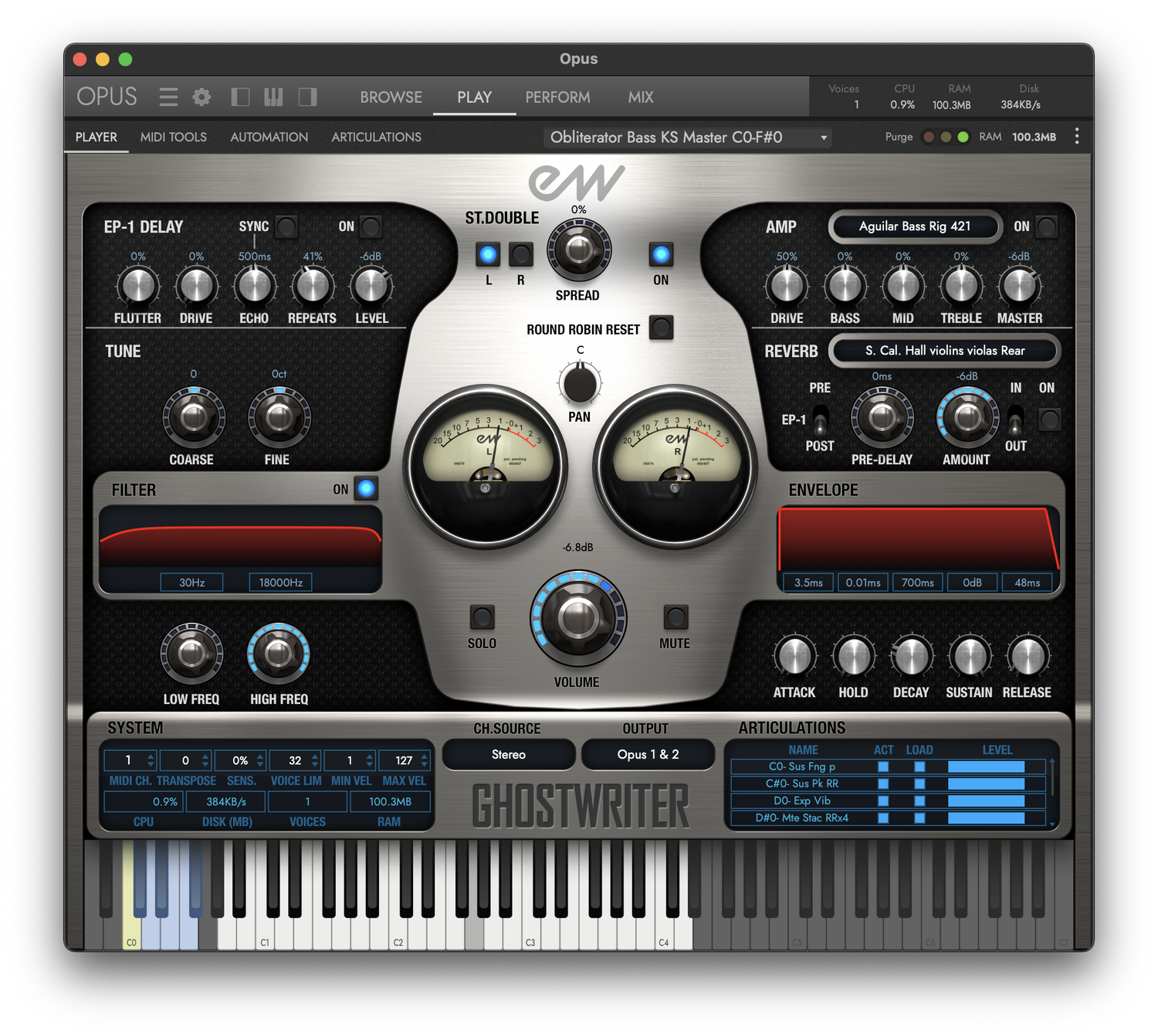 - The software includes many new advanced sound shaping tools, a new EastWest AMP Simulator with 80 Amp Presets, Ohm Force's Ohmicide Multi-band Distortion software, classic Echoplex EP-1 Delay, Solid State Logic EQ & Dynamics Channel, consisting of: Filter, EQ, Compressor and Noise Gate/Expander, Solid State Logic Transient Shaper, the legendary Solid State Logic Stereo Compressor, and EastWest Expanded Convolution Reverb with 726 Additional Reverb Preset