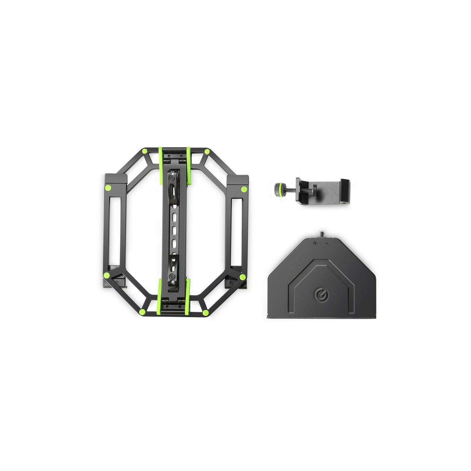 As a musician or DJ, it is important that all your instruments, your equipment, and your accessories are compact, securely packed, and easy to transport in the van when you are on the go. The Gravity® Rapid Desk Set 2 combines the proven and stable KSX 2 RD with the likewise proven foldable laptop stand LTS 01 B and the transport bag BG X2 RDB. With just a few simple steps, you can create a robust and practical table that allows you to position your equipment perfectly with the laptop stand, and that is easy and safe to transport with the carrying bag.