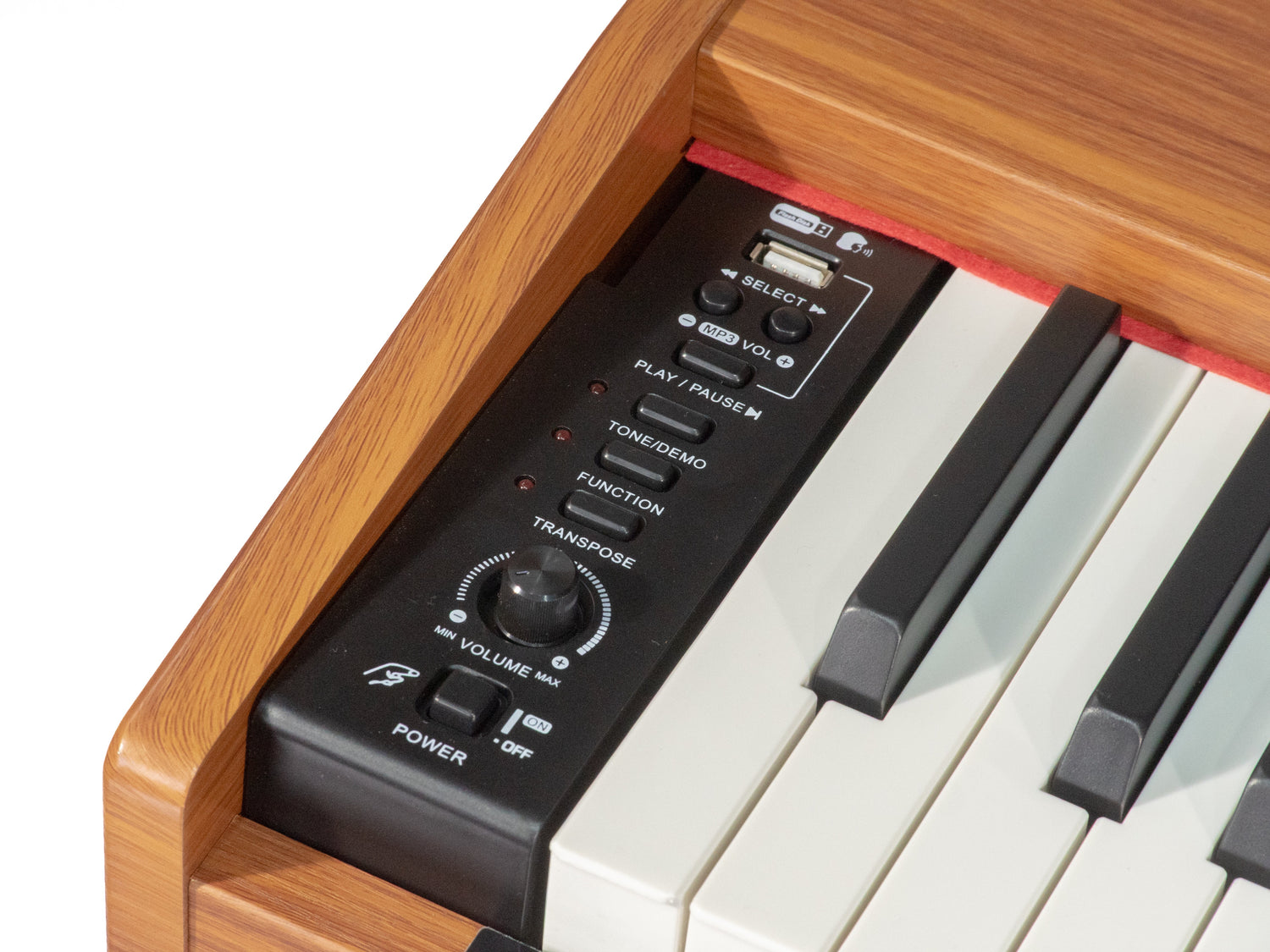 Grooveland DDP-140 includes 40 built-in demo songs and allows for MP3 playback, so you can play along with your favorite tracks. With dual headphone outputs, two people can practice simultaneously – perfect for teaching or quiet practice.