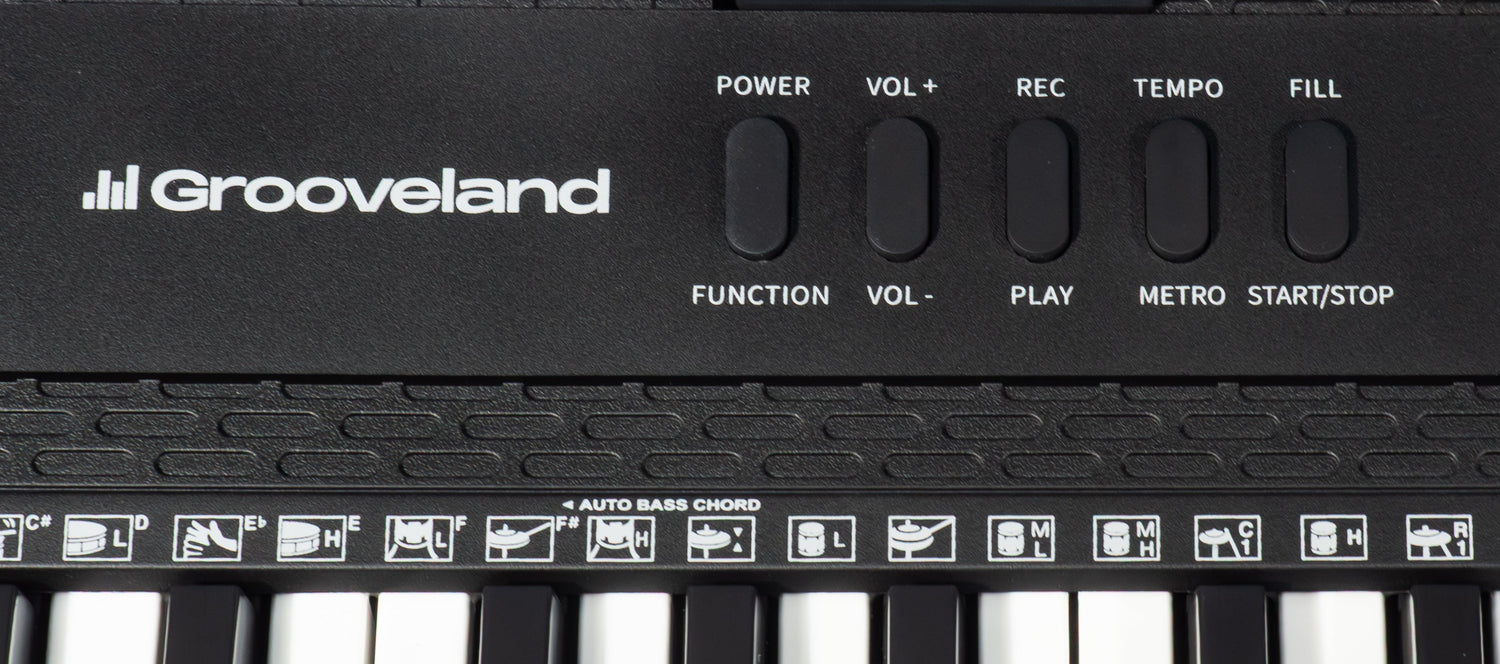 The Grooveland E261 can be powered by the included power supply or by 6 AA batteries (not included), so you can play both at home and on the go. There is also an input for a sustain pedal (sold separately).