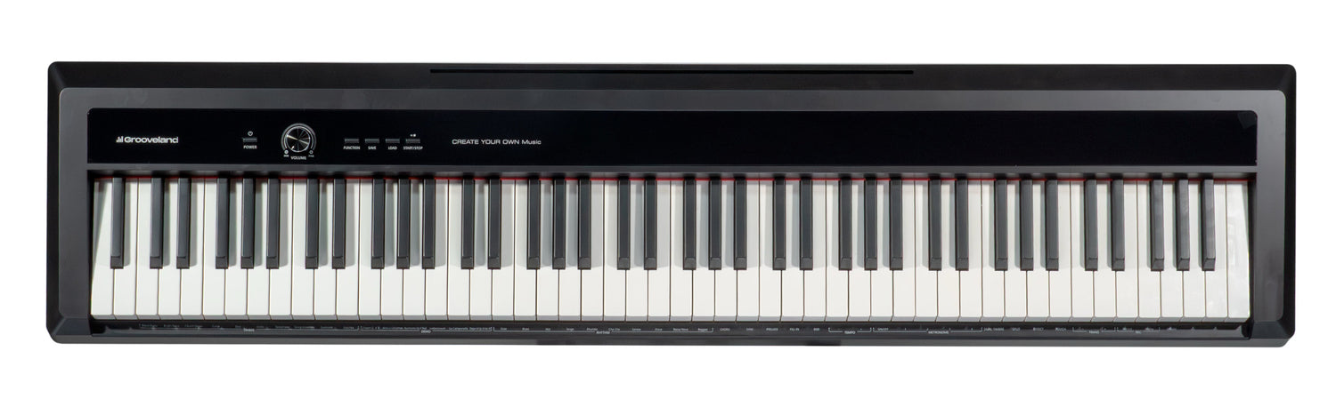 The Grooveland P450 also features 6 demo songs, a master volume control, and a dual headphone output, allowing two people to play or practice together without disturbing the surroundings.