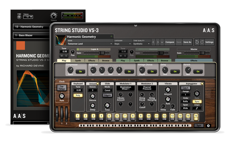 With Harmonic Geometry, Richard Devine explores our string modeling synthesizer in all its facets. In his distinctive style, he brings us elaborate timbral perspectives and intricate textural spaces using the many shapes and forms of String Studio.