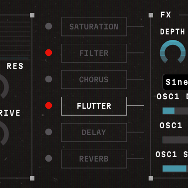 ? 6 fully-tweakable, effects modules - Saturation, Filter, Chorus, Delay, Reverb, and Flutter (an authentic wobbly cassette sound)