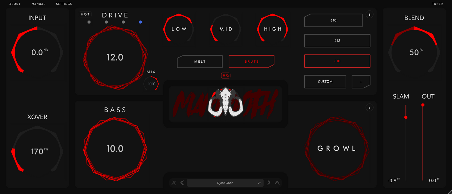 Mammoth is a powerful yet intuitive bass plugin featuring two-band signal processing that includes a bass maximizer, 3 types of drive, a tone stack, cabinet simulations and much more. We designed Mammoth with simplicity and flexibility in mind. It's made for artists, producers and engineers alike.