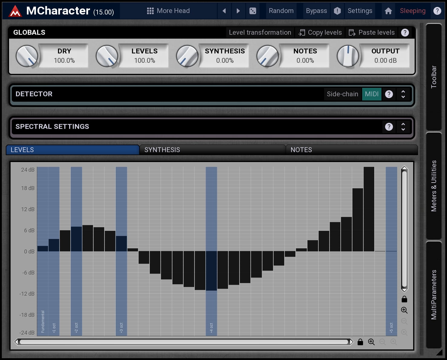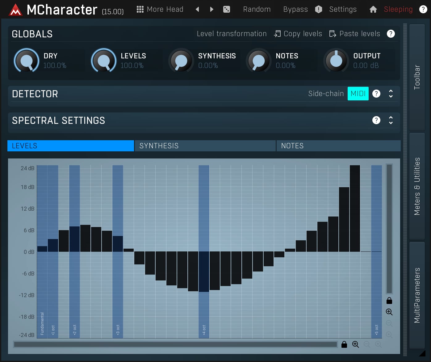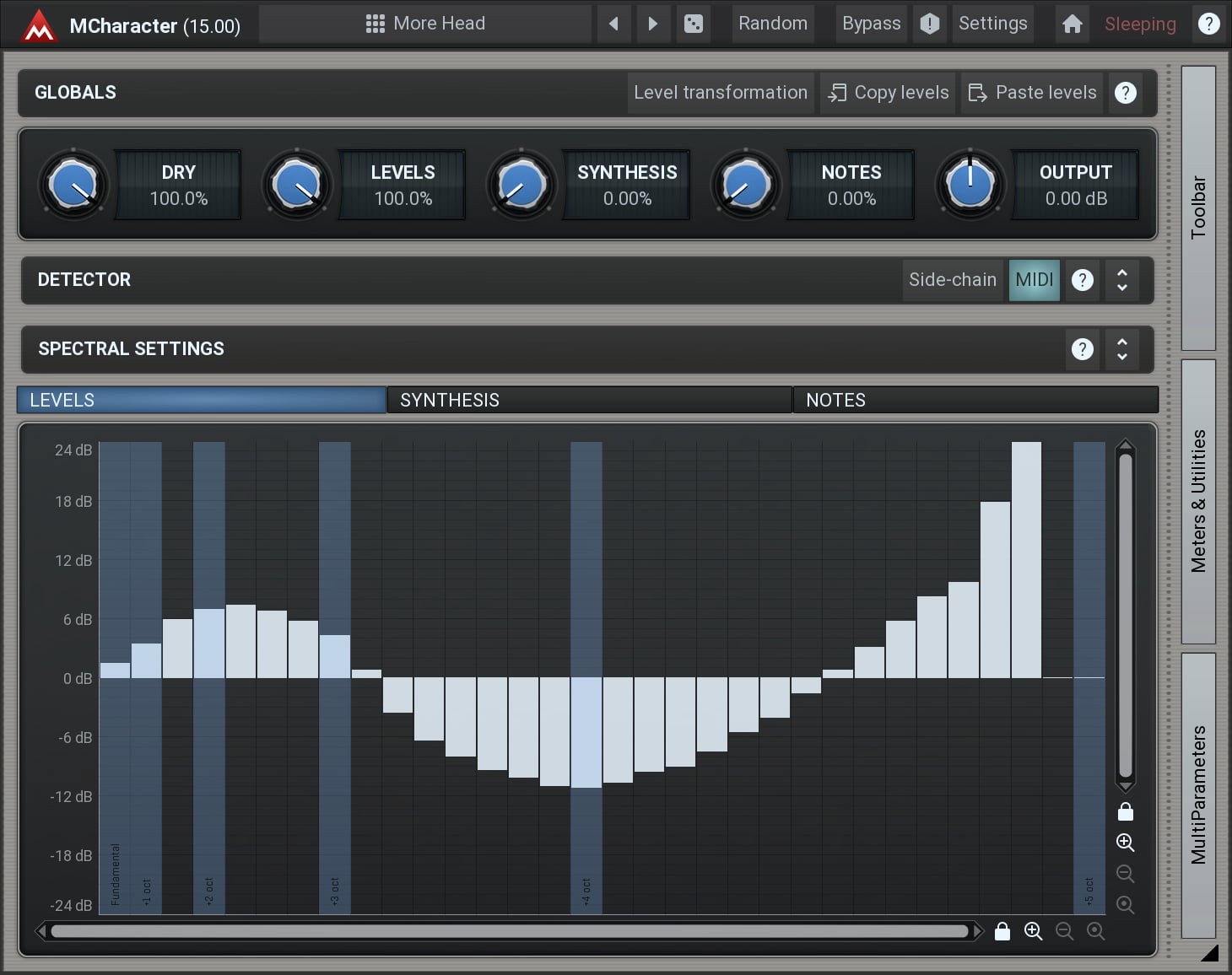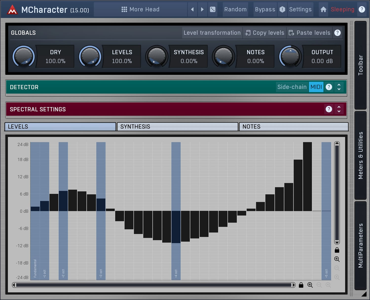 MCharacter is a unique tool, that lets you directly control the harmonics of any monophonic audio material. It can be used on vocals, bass, trumpet, saxophone... It opens a range of mixing and creative possibilities.